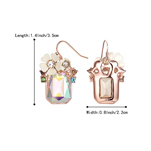 • Material: Hook dangle earrings featuring emerald cut stone embellished with flower and mixed stone cluster.Adorned with selected Crystal, crafted with eco-friendly Zinc alloy, Lead-Free and Nickel-Free, this special design is born to match the clothes and your unique beauty.