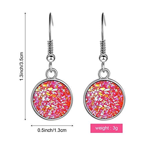 Hicarer 20 Pairs Faux Druzy Drop Earrings Simulated Stone Dangle Rainbow Crystal Earrings(Round Shape Style) 6