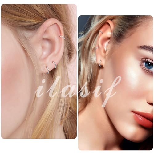 • Convenient and Comfortable: The little small cartilage earrings are simple cuff design. Very easy to open and close. Lightweight and comfortable to wear. You will just feel nothing on your ears when wearing these small silver hoop earrings.