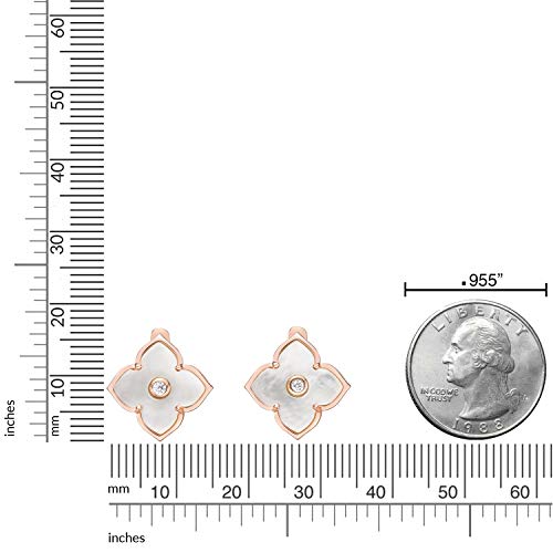 • BLOOMING JUST FOR YOU - Experience the timeless elegance with these flower stud earrings, a perfect blend of mother of pearl and cubic zirconia, set in rose gold plated sterling silver. Each earring boasts a 16mm cubic zirconia stud, delivering a captivating brilliance that captures the essence of a radiant flower in full bloom. The hinge post back ensures a secure and comfortable fit, allowing you to wear it day and night. Let these earrings become a statement piece that radiates beauty