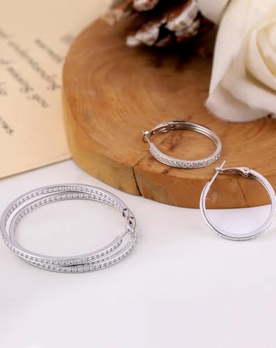 • MADE WITH HYPOALLERGENIC - The large diamond hoop earrings are made of 18K white Gold plating 925 sterling silver. All the metals we use are lead free, nickel free and hypoallergenic, they are safe and friendly to almost all sensitive skins. These silver hoops will not turn your skin green, red or itchy.