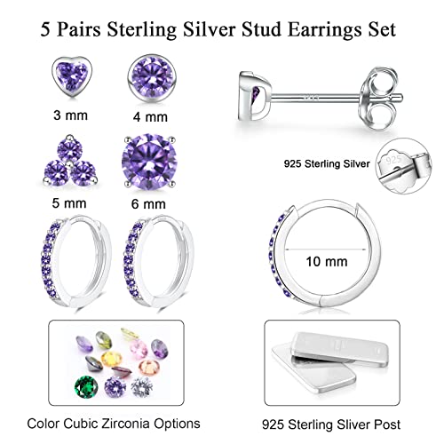 • Hypoallergenic Earrings Material: 5 pairs 925 Sterling silver stud hoop earrings set are made of 925 sterling silver & 5A white clear cubic circonia, platinum plated, lustrous and not easy to fade. The clasp is flexible, very easy to close and open. Small sterling silver earrings for women are the best choice for sensitive ears, hypoallergenic and comfortable