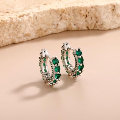 TOPGRILLZ Hoop Earrings for Women - Silver Chunky Huggie Earrings Pink & Green 5A+Cubic Zirconia Cartilage Earrings Jewelry For Women 6