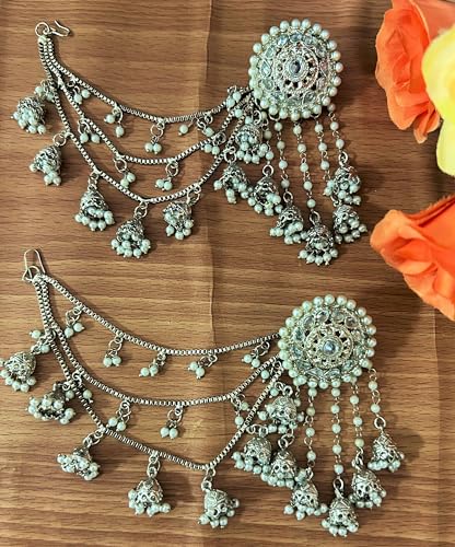 More information about Silver Polish Bahubali with Kaan Chain Earrings Ethnic Bollywood Jewelry Traditional Bahubali Indian Partywear Jhumka Chandbali Wedding Earrings