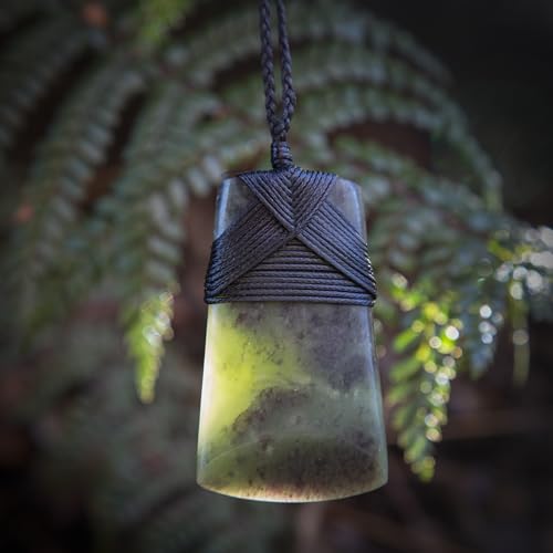 100% New Zealand Jade Necklace for Men and Women, Hand Carved Maori Necklace Jade Pendant for Men With Black Adjustable Cord, Pounamu Green Stone, Toki Nephrite Jade Large 2.8in (70mm) 2