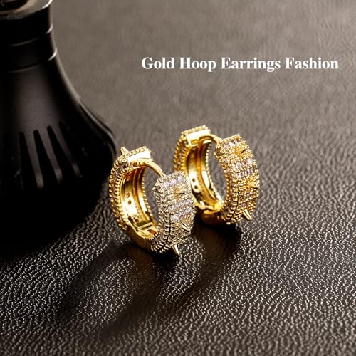 HOT ! Goth Punk Black Hoop Earrings For Men 14K Gold Spike Hoop Earrings 5A+ Cubic Zirconia Gothic Huggie Earrings Trendy Cool Edgy Vampire Earrings For Women Men for All Occasions