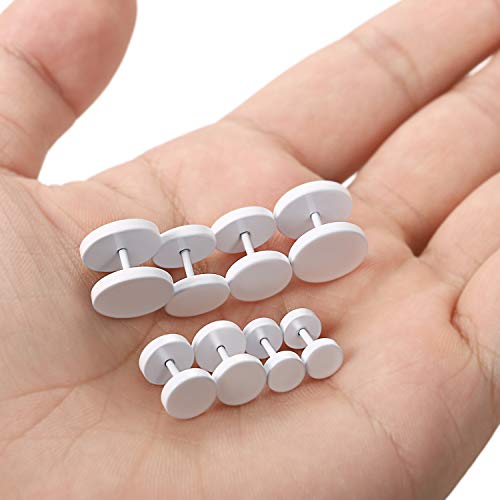 4 Pairs Unisex 6-12MM Stainless Steel Stud Earrings Set,Cupimatch Ear Piercing Plugs Faux Gauges Illusion Tunnel Screw Earrings, White 5