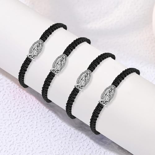 2Pcs Catholic Virgin Mary Bracelet Adjustable Black String La Virgen de Guadalupe Bracelet for Easter Party Favor Prayer Blessing Protection Men Women 4