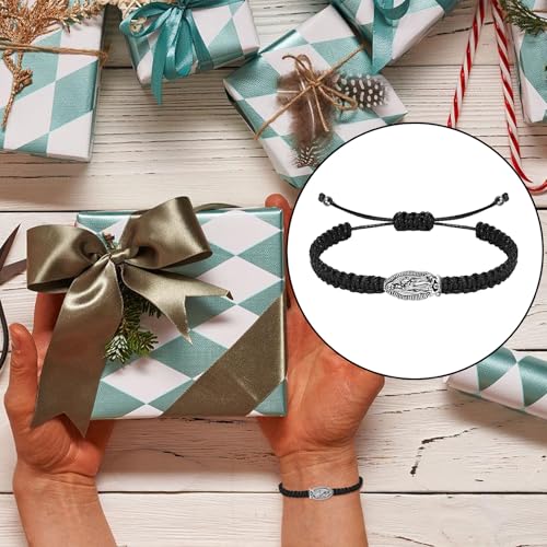 2Pcs Catholic Virgin Mary Bracelet Adjustable Black String La Virgen de Guadalupe Bracelet for Easter Party Favor Prayer Blessing Protection Men Women 5
