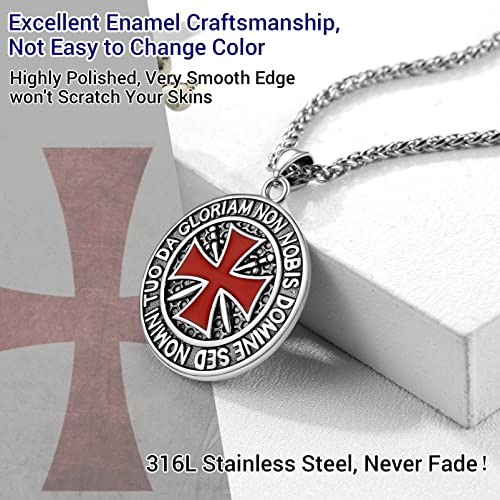 PROSTEEL Vintage Masonic Knight Templar Necklace, 316L Stainless Steel Round/Cross/Shield Pendant Necklace, Come with Box 3