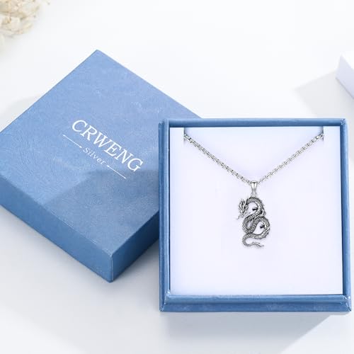 Dragon Necklace for Men 925 Sterling Silver Pendant Necklace Unisex Jewelry Valentine's Day Birthday Gift for Men Women 22+2 Inch Chain 7