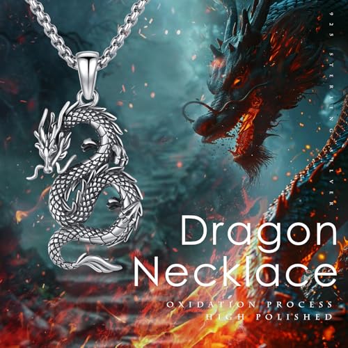 Dragon Necklace for Men 925 Sterling Silver Pendant Necklace Unisex Jewelry Valentine's Day Birthday Gift for Men Women 22+2 Inch Chain 5