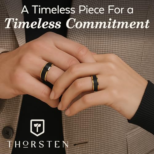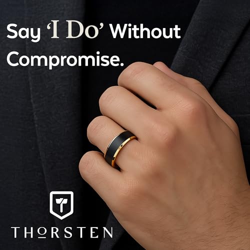 HOT ! Thorsten Gaston Gold-Plated Tungsten Carbide Mens Wedding Ring – Flat Black Matte Brushed Inlay with Comfort Fit – Durable, Elegant Mens Wedding Band or Engagement Ring