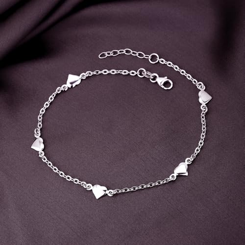 More information about Sterling Silver Jewelry - Rhodium Plated with 925 Stamp - Multi Heart Charm Anklet - Foot Jewelry Stylish Beautifully Designed - 9" long + 1" extender