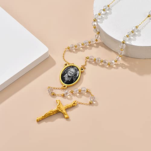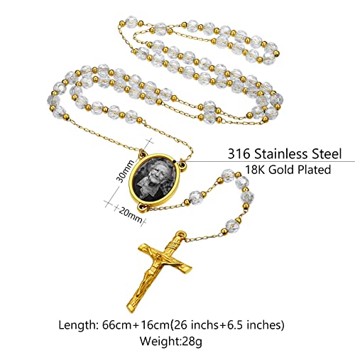 HOT ! Custom4U Personalized Rosary with Picture Custom Rosary Beads Catholic Necklace for Women Men Miraculous Medal Crucifix Cross Y Necklace Stainless Steel Chain Rosary Prayer Gifts (with Gift Box)