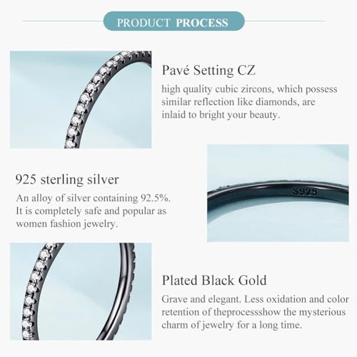 WOSTU 2MM Thin Band Eternity Rings 925 Sterling Silver Black Cubic Zirconia Egagement Rings Wedding Anniversary Stackable Rings Christmas Gifts for Her 4