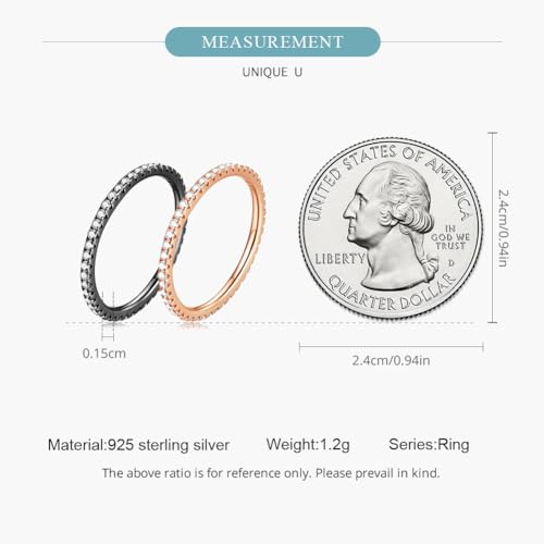 WOSTU 2MM Thin Band Eternity Rings 925 Sterling Silver Black Cubic Zirconia Egagement Rings Wedding Anniversary Stackable Rings Christmas Gifts for Her 5