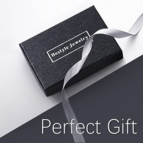 Bestyle Stainless Steel Men Signet Ring-Black/Blue Gemstone Band Ring-Classic Simple Thick Men Ring Size 7-14 5