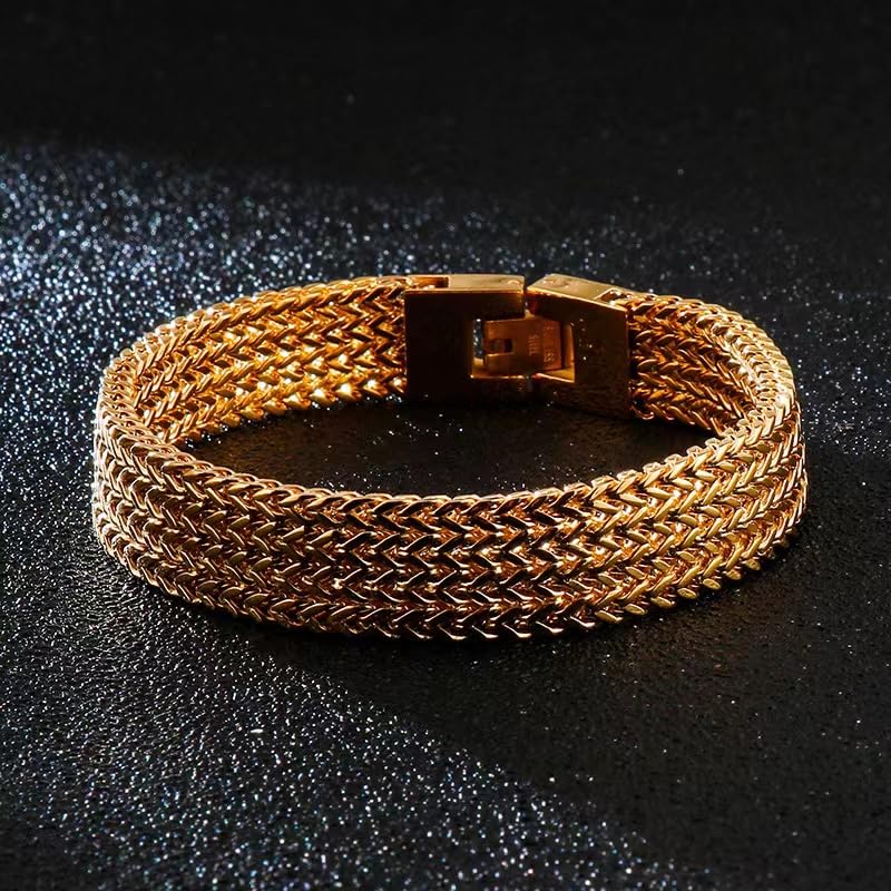 • This bracelet features a mesh design with full lines that are tightly connected to perfectly fit your wrist. Wearing it in any occasion will make you more confident