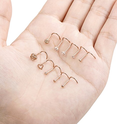 Tornito 20G 10Pcs Stainless Steel Nose Screw Studs Rings CZ Nose Ring Labret Nose Piercing Jewelry for Men Women Silver Rose Gold Tone 6