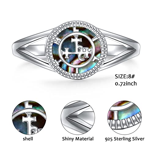 DAOCHONG Sigil of Lilith Abalone Shell Statement Ring S925 Sterling Silver Sigil of Lilith Statement Ring Gifts for Women Men 5
