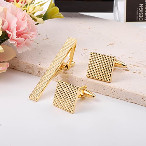 • PACK: Each Set Includes Pair of Square Cufflinks, Matching 2" Tie Clip Bar. match with a cleaning jewelry cloth, The set comes from Black Gift Box With High-Quality elastic rope Insert To Hold Each Piece in Place.