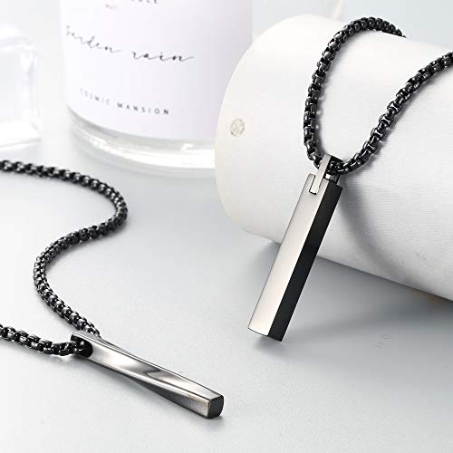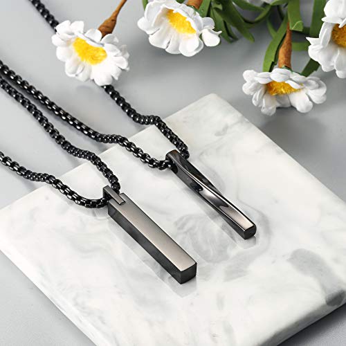 • DESIGN & PRESENT READY--Black Twisted Cube Bar Pendant Necklace for Men, Stylish and Shiny, Less but Better.Perfect weight and comfortable to use, daily wearing necklace.Great Present for Birthday, Graduation, Aniversary, Christmas, Valentine's Day, etc
