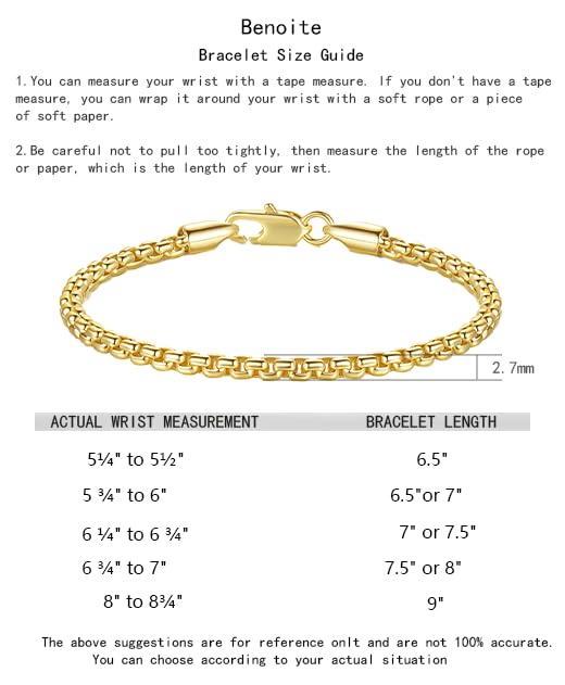 • 【Classic Box Chain Links】The classic box chain design of our gold chain bracelet for women is a popular choice for gold jewelry lovers. Each square link of the gold bracelets is meticulously connected to create a smooth, continuous chain that looks like a series of interlinked boxes. This detailed design adds a subtle texture and depth to the gold bracelets for mens bracelet, enhancing its overall appeal