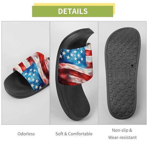HOT ! 4th of July Patriotic U.S. Flag Non Slip Slides Sandals for Women Men Quick Drying Shower Shoes for Bathroom Pool Beach