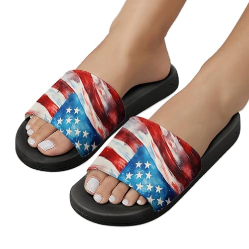 4th of July Patriotic U.S. Flag Non Slip Slides Sandals for Women Men Quick Drying Shower Shoes for Bathroom Pool Beach 4