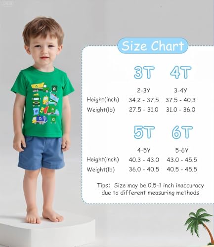 Kids Boys Cotton T-Shirts Shark T Shirt Short Sleeve Fishing Tees Truck for 3-6 Years 5