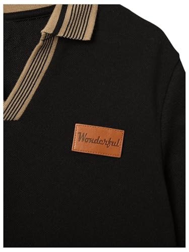 HOT ! SweatyRocks Boy's Long Sleeve T Shirts Collared Drop Shoulder Letter Patched Casual Golf Shirts