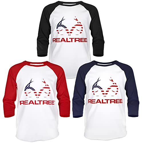 • USA 3 PACK - Save big with our 3 for 1 American flag themed raglan sleeve shirts from Realtree, the pioneers in outdoor sportsmen gear. All 3 shirts feature the Realtree logo in a 4th of July friendly USA flag overlay.