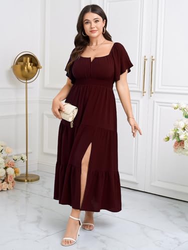 SCOMCHIC Womens Plus Size Maxi Dress Formal Short Sleeve Square Neck Smocked Side Split Flowy A Line Tiered Long Dress 6