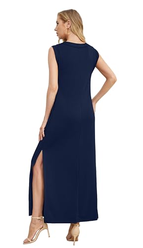 • [Trendy Design]This unique maxi dress has a triangle patch at the underarm for modesty without sleeves. The side slit hem accentuates your curves, making you look charming. Convenient side pockets for hands-free movement.