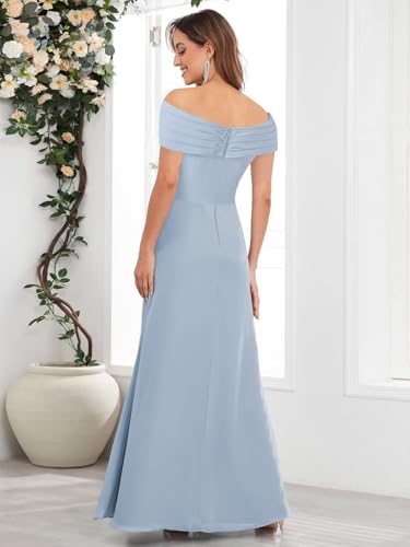 Off Shoulder Mother of The Bride Dresses for Women Long A-line Ruffles Chiffon Ruched Formal Evening Dress 6