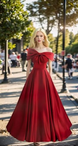 More information about Off Shoulder Prom Dresses Satin Long Ball Gowns for Women Bowknot A Line Formal Wedding Party Gown with Pockets