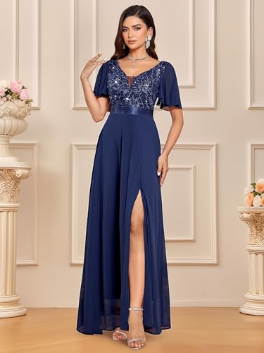 HOT ! Miusol Women's V-Neck Sequin Lace Classy Ruffle Sleeve Bridesmaid Maxi Dress