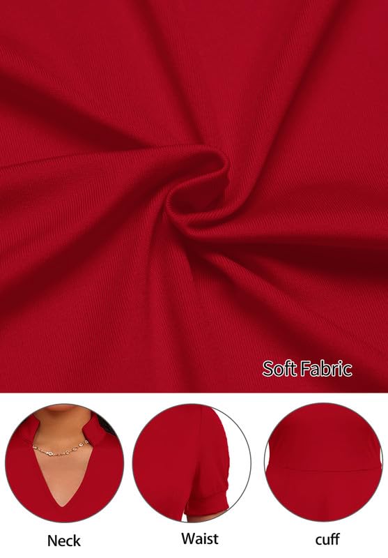 • STYLISH& FLATTERING DESIGN: This classic business dresses for women featuring v neck, a line and puff sleeve. V neck dress with invisble at side zipper, swing skirted,length is knee-length. Vintage dress, fit and flare dress that hide belly fat, flattering fit dresses simple but elegant and never out of date.
