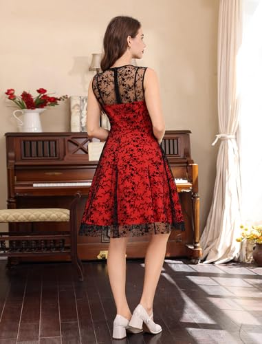 Women Mesh Floral Embroidery Vintage Cocktail Swing Dress Illusion 50s Goth Flared A line Casual Wedding Prom Evening Dress 4