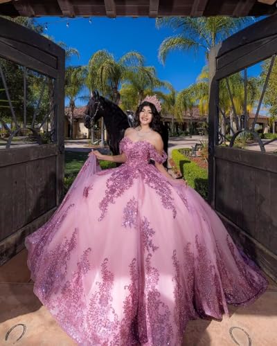 More information about Mauuwy Sparkly Beaded Quinceanera Dresses Puffy Lace Glitter Applique 15 Dresses Off Shoulder XV Ball Gowns with Bow