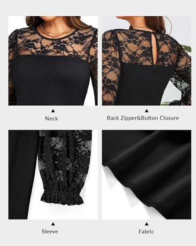 • Features: This plus size dress with lace sleeves features a crew neck, concealed back zipper, and functional button closure. The A-line short hem creates leg-lengthening proportions while delicate flutter sleeves softly contour arms. Designed with curvy women, this fit-and-flare dress accentuates curves without constriction, delivering all-day comfort.