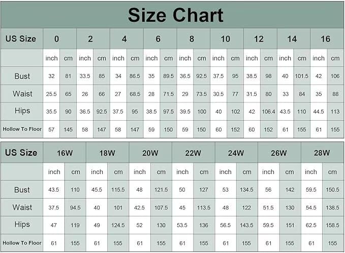 • Custom Service: To choose fitted size, please read our size chart carefully before ordering an order. We also provide free customization service. If you need to customize this dress, please kindly send us your measurement details including bust, waist, hips, hollow to hem.