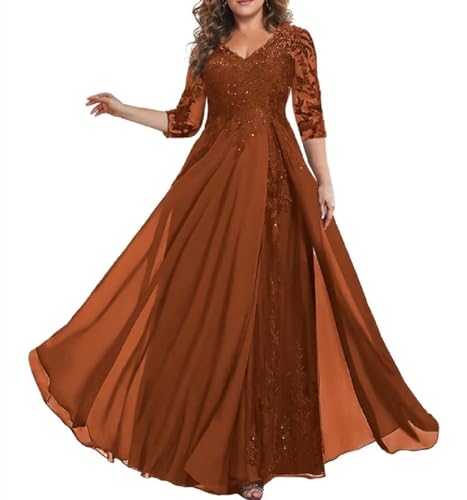 3/4 Sleeve Mother of The Bride Dresses for Wedding Chiffon Lace V-Neck Long Formal Evening Gowns 6