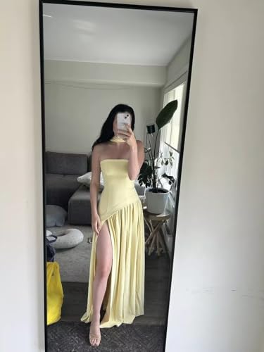• Features: This elegant chiffon bridesmaid dress features strapless, with scarf, pleated, asymmetrical, tube neck, floor length, built-in bras, fully lined, and adjustable lace up back