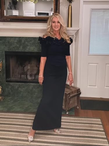 More information about Maxianever Ruffled Short Sleeve Mother of The Bride Dresses Satin Off Shoulder Maxi Formal Dress for Women 2025