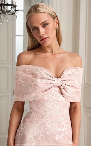 Jacquard Satin Mermaid Prom Dress Off Shoulder Bodycon Formal Evening Dress with Big Bow ZD258 7