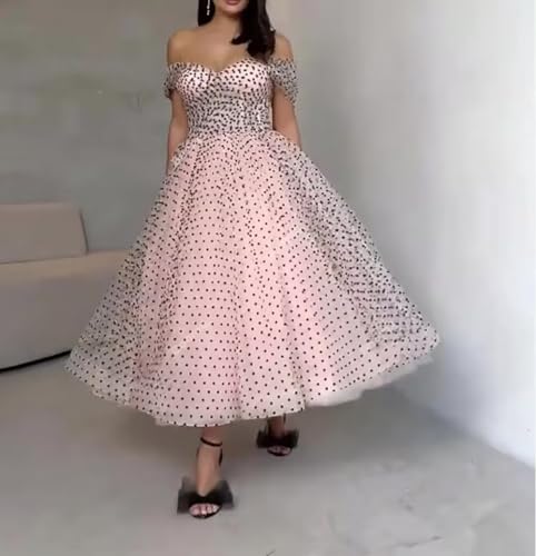 Dydsz Vintage Polka Dots Tulle Prom Dress for Women Elegant Evening Dresses Off Shoulder Formal Party Gown Tea Length 6