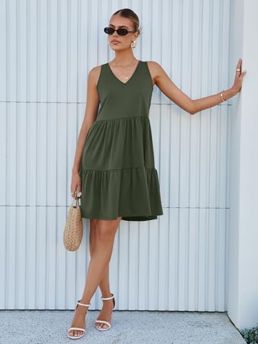 Womens Summer Dresses V Neck Tank Tiered Flowy Mini A Line Casual Sundress with Pockets 1