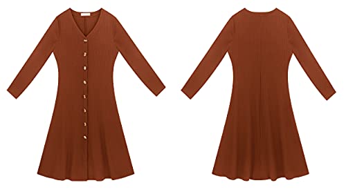 R.Vivimos Women's Winter Cotton Long Sleeves V-Neck Casual Button Down Knit Sweater Midi Dress 6